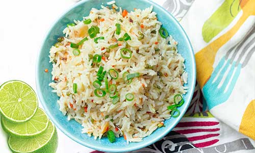 Have a heaping bowl of refreshing coconut lime rice, kick up your heels, and relax to your favorite Jimmy Buffet Song. Make sure to add some diced up mango for some added sweetness.